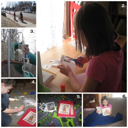 8 & 9. Sometimes, a mama just needs a pastry. Not knowing any pastry delivery services, we finished up school today in short order, and headed for a neighborhood grocery store where I could both grab a couple items I needed and treat all of us to donuts. Aren’t the kids silly? It was a bit chilly while we were eating outside the store – I think Baby J was a little cold! After our treat, we went to a fundraiser rummage sale at a nearby church, then headed home for a fun afternoon…of more Angry Birds once the chores were done!