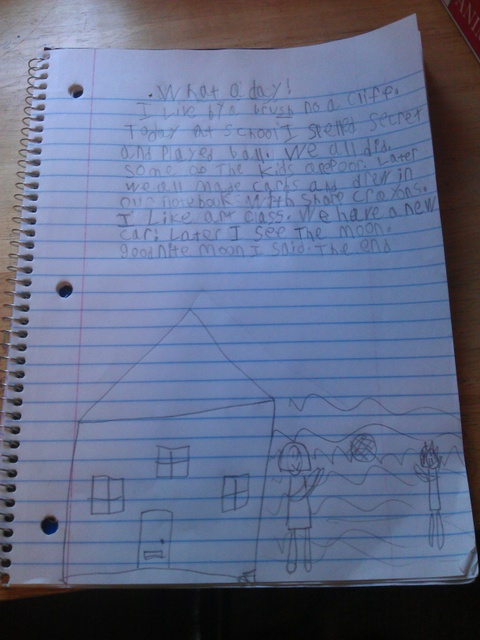 Miss M asked if she could write a story with her spelling words each week. I said, “Of course!” She is pretty good about asking how to spell words she doesn’t know but wants to add to the story. She has written two stories so far — the first contained no mistakes (not counting words we haven’t worked on that she asked about first before writing down), and the second story only contained a couple of small mistakes. One mistake that was kind of funny to me was her spelling of the word “later.” She insisted several times that it must be “lader” — because that is how it sounds when she says it! I had to write down “late” and “later” before it clicked for her! Maybe “enunciation” or “articulation” is a subject we’ll have to pay more attention to in the future!
