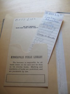 Finally, I just have to say I’m so glad my library keeps old books like these. I loved this relic of the past in the back of the book: