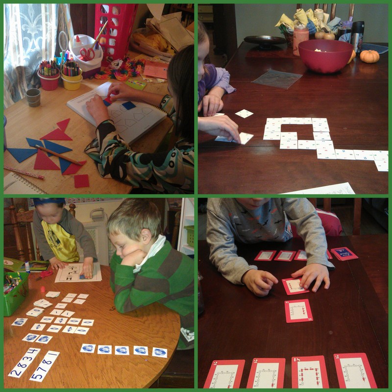 Mr. E really enjoyed adding big numbers with the base-10 picture cards, and then also with side 2 of the abacus. I love how RightStart emphasizes place value early on. Mr. E wanted to play games on Friday as well since Miss M got to do that with me, so we pulled out Speed and played games of 2, 3 and 5 speed. I don’t think I have mentioned it in any blog posts, but we got this game a month or so ago and really enjoy it. It’s a fun way to practice or learn multiples/skip counting. Mr. E and Miss M both love this game!